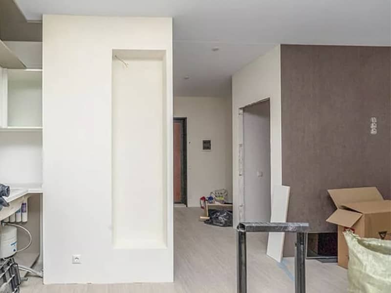 - Грунтовка, штукатурка и покраска стен и облицовка их декоративными материалами (обои, панели и т. д.)