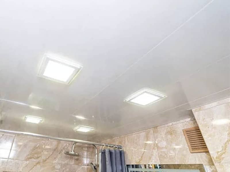 - Монтаж реечного потолка со встроенными светильниками.