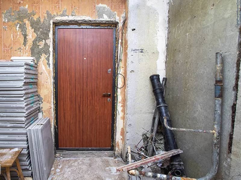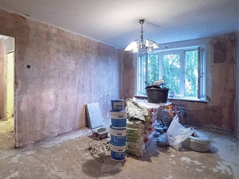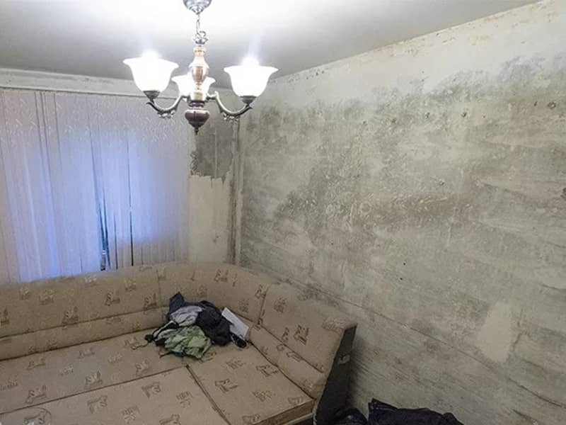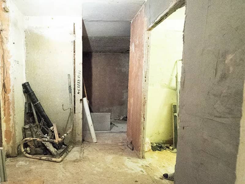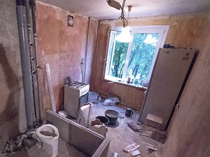 - Демонтажные работы: удаление старых покрытий (обои, краска), электропроводки и перегородок в санузле. Произведен вывоз мусора.