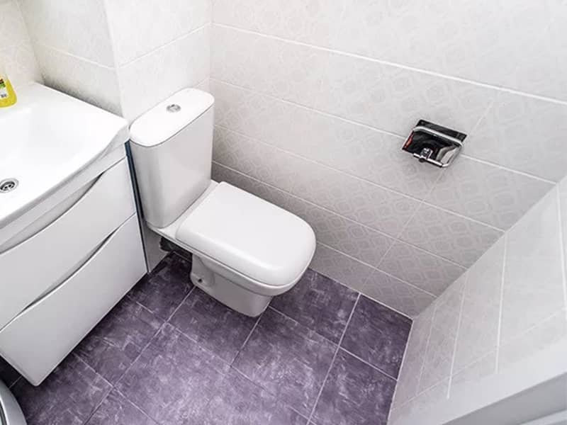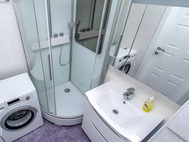 - Установку душевой кабины, унитаза и раковины с подстольем.