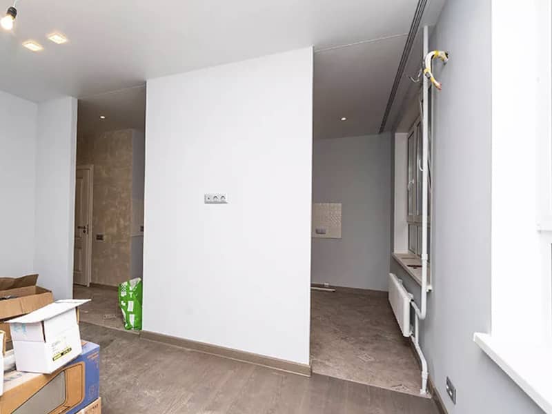 - Вся квартира была подвергнута стяжке, чтобы создать единое покрытие пола.