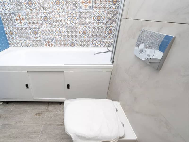 - В совмещенном санузле была выполнена укладка керамической плитки трех видов.
