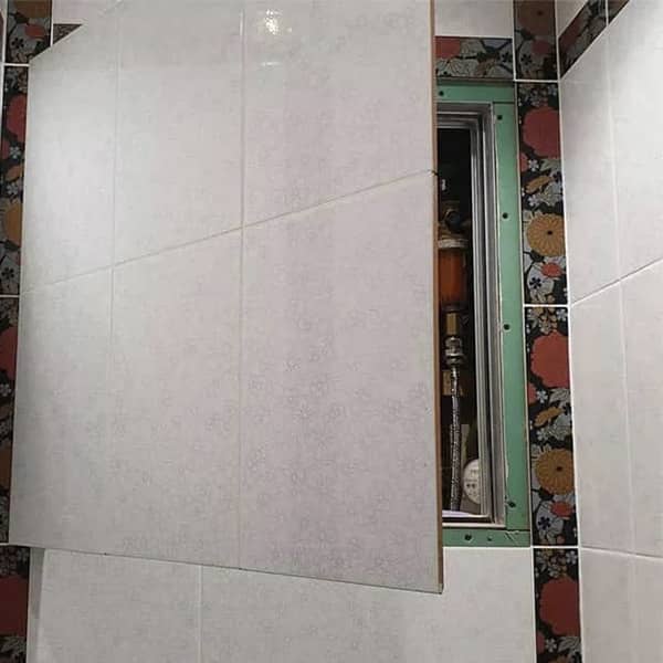 - Монтаж лючка под плитку с качественной облицовкой для практичности и эстетичности.