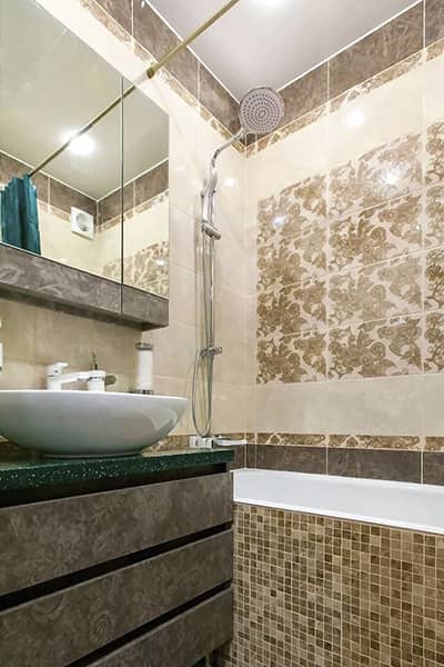 - Укладка керамической плитки на стены и пол для создания эстетичного и легкого в уходе покрытия.