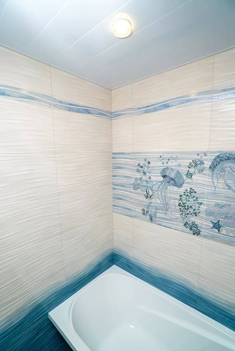 В третьей фазе мы произвели монтаж керамической плитки в санузлах и установили ванну.