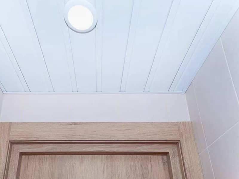 - Реечный потолок снабжен точечными светильниками.