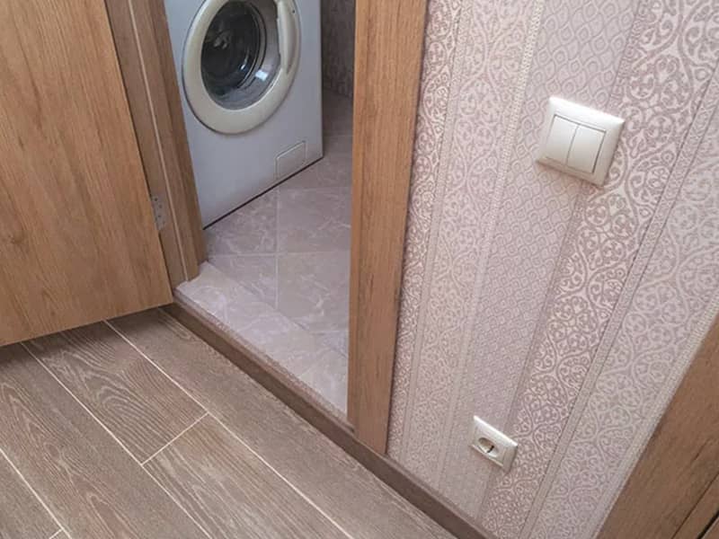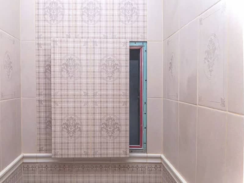 - Установлен люк-невидимка с механизмом нажимного открывания и плиточное облицование.